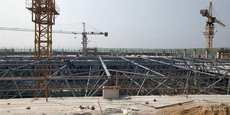 平面形狀為圓形、正方形或接近正方形時,網(wǎng)架高度可取得小些,狹長平面時,單向傳力明顯,網(wǎng)架高度應(yīng)大一些